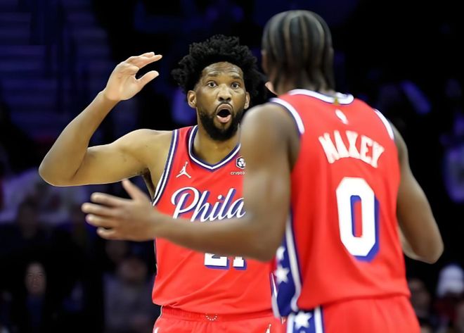 但在整体进攻上,球队大多数时候还是只能依靠机遇战得分,虽然费城在末节高压轮转防守下的确能让更多球员得到转换进攻机会,但一落到了阵地战,球队目前的进攻选择就只剩下马克西和乌布雷的单打,或者是埃奇库姆和格兰姆斯的外线三分。