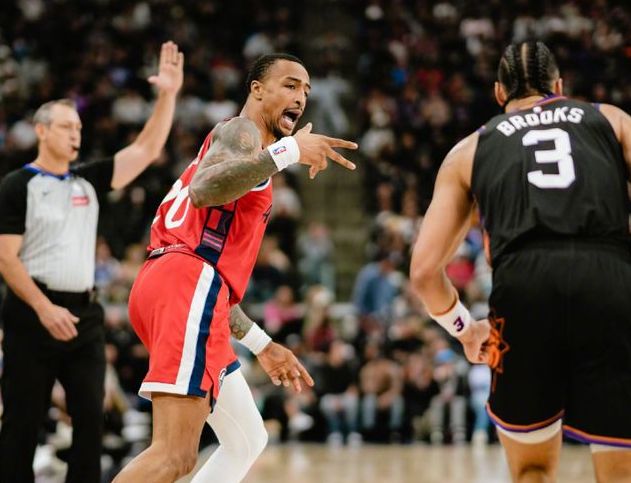 次节,科林斯联手祖巴茨、邓恩在太阳内线砍分,6-0的开局将分差抹平。暂停回来,比尔连续投篮不中,邓恩罚球也不中,太阳两个3分命中,再度建立6分领先优势。祖巴茨在内线打出优势,连拿4分,科林斯抢断打进2+1,快船刚领先1分,狄龙和古德温分别命中3分,太阳拿下5分领先,打停快船。比赛回来,祖巴茨抛投打进后,两队陷入混战,哈登连续3分不中,布克反击上篮打进,克里斯蒂造犯规两罚一中,吉莱斯皮连中3分,布克借助掩护换手上篮,太阳外线突然爆发,取得14分领先,快船这边的进攻一片混乱,丝毫没有章法可言。半场打完,太阳60-46领先快船。